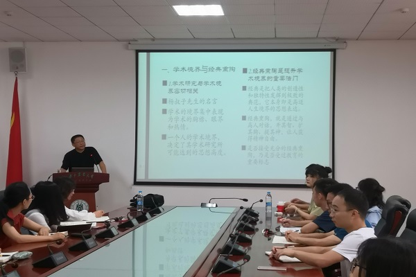 报告会上,于述胜教授首先介绍了学术境界与经典熏陶意义。他指出,学术研究与学术境界密切相关,一个人的学术境界决定了其学术研究所可能达到的思想高度,而经典熏陶是通过与高人对话,开其智、扩其胸、提起神,让人获得精神自由,这是提升学术境界的重要法门。随后,他谈到学术话语的经典意识,完善的学术话语一定是在总结经验的基础上,深入而广泛回应现实发展困境,为人类走出困境进行价值和方法指引,学术话语的创新离不开自觉地经典意识,且必须以充分吸收经典的古老智慧为基础。最后他强调,基于学术境界和学术话语的学术发表必须要有问题意识,问题意识是学术写作的灵魂所在。