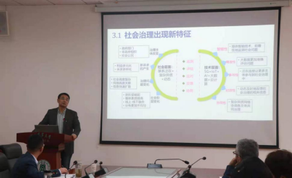接着,鲁耀斌教授回顾了2012年-2019年间我国社会治理工作的重点要求,从农业社会、工业社会、信息社会和智能社会四个经济形态对应分析了社会形态,新形态社会具有新特征:参与治理的主体增加,产生了新的诉求,治理问题复杂化;信息快速扩散,社会阶层中出现新阶层,分布更广泛;技术方面也更具智能性、精确性、参与性、时效性和协同性。与此同时,社会治理也面临着新问题和新挑战:信息来源渠道单一,缺乏多源数据的关联分析;评估依赖主观判断,缺乏对动态的精准评估;侧重于社会管理,缺乏个体多样化应对;对治理过程和结果缺乏了解,缺乏对治理结果的实时动态反馈等。基于此背景,鲁耀斌教授提出研究问题——基于大数据的智能化社会治理监测,评估与应对策略。