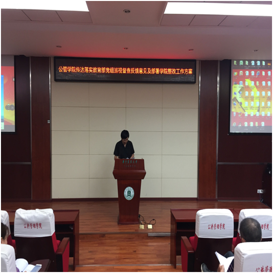 在人文楼M115报告厅召开了全院教职工大会传达落实教育部党组巡视督查反馈意见,全体教职工参加了会议,会议由党委书记程为民主持。