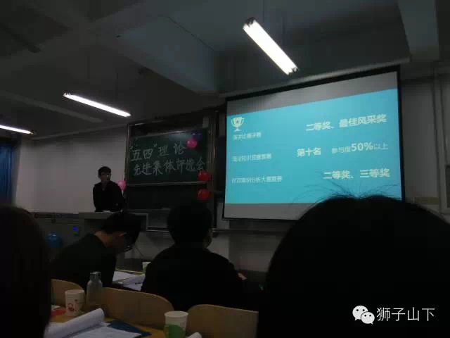 经过两个小时的激烈角逐,各个奖项尘埃落定。我院理论学习部荣获“五四理论学习先进集体”称号,希望我院理论学习部能越办越好,路有多远,理学走多远!
