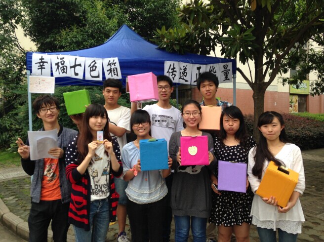 素质拓展部主办的“幸福七色箱,传递正能量”活动在荟园主干道摆点,本次活动旨在宣传公管院心理活动室建设,宣泄同学们内心积压已久的烦恼和忧虑,释放了自己心里的压力,大胆的放飞了自己的理想和愿望,并以此来激励自己不懈的努力与奋斗,并为同学们搭建一个心理交流平台,传递心灵正能量。