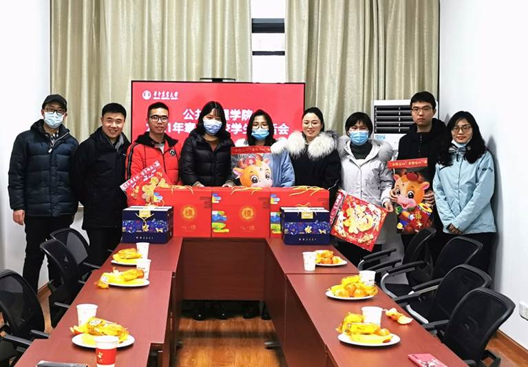 在人文楼M108开展2021年寒假留校学生茶话会,为今年寒假留校学生送上新春礼包和祝福。