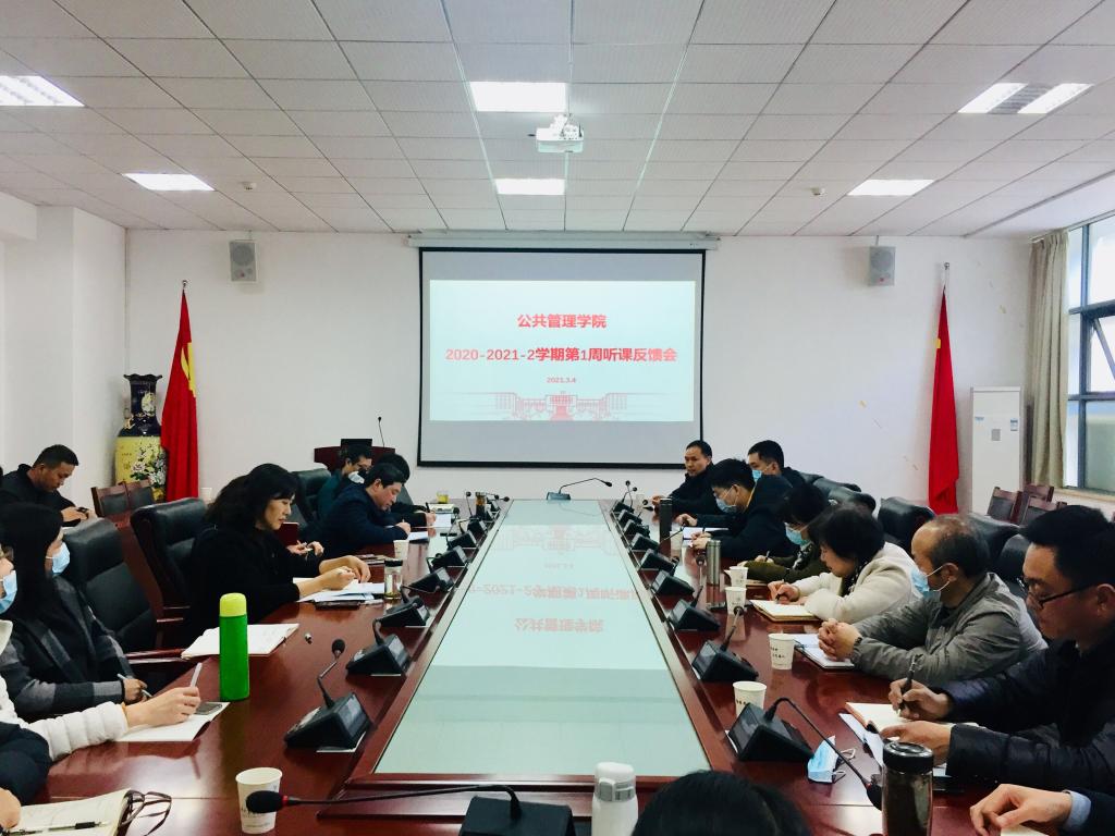 “开学第一课”听课反馈会在人文楼M101会议室召开。学校职能部门听课人员、H动漫