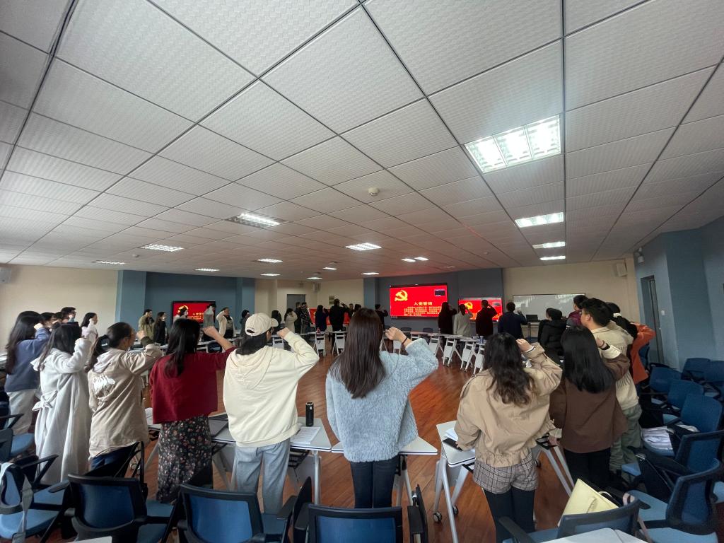 工程管理系教工党支部、研究生第一党支部、工程管理本科生党支部在人文社科楼M221联合开展“新起点激励新作为,新征程夺取新胜利”主题党日活动,会议由工程管理系本科生党支部支部书记徐冠博主持。