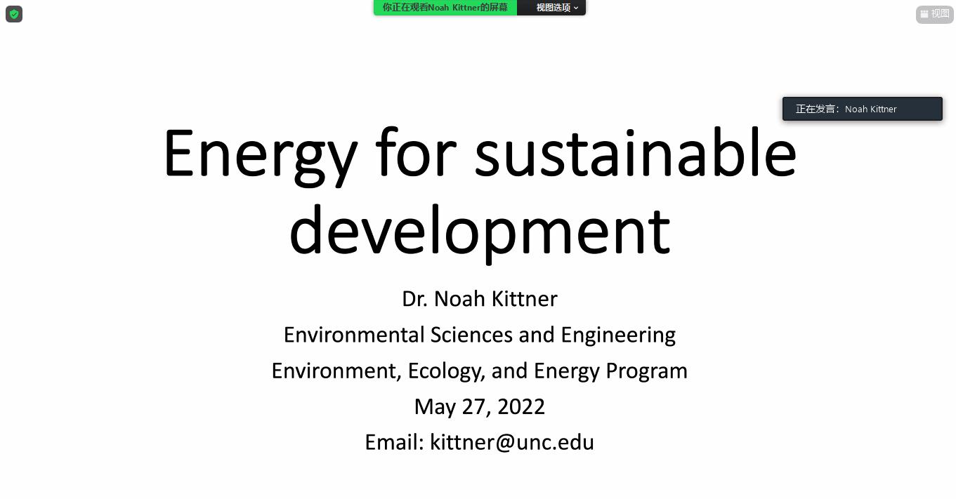 暑期线上课程之《能源可持续发展》首周开课,该课程邀请北卡罗来纳大学教堂山分校城市与区划规划系Kittner副教授讲授,以ZOOM为平台,近4周内完成。