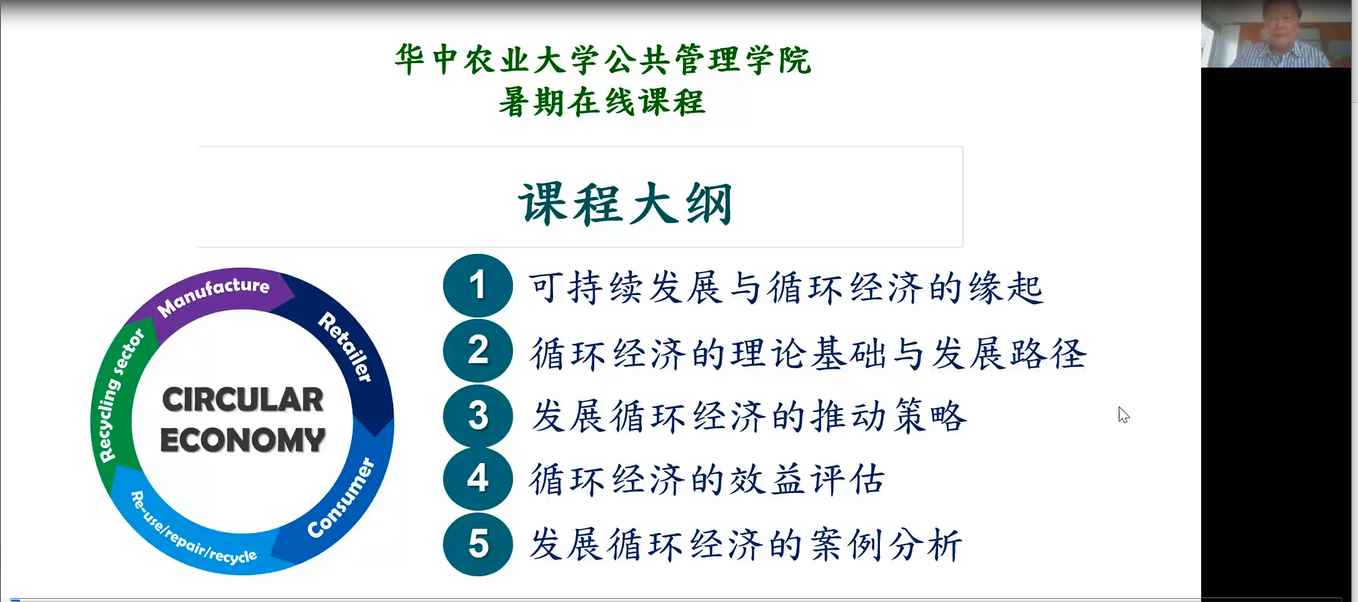 引智类课程暨暑期线上课程之《循环经济理论与实务》首周开课,该课程由黄宗煌教授讲授,以腾讯会议为平台,近5周内完成。