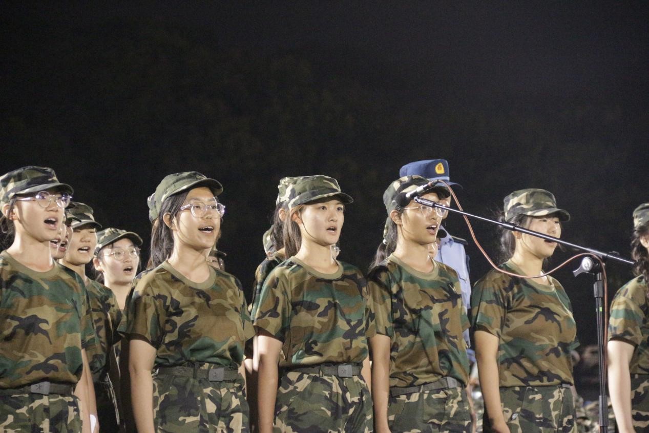 随后军训教官进行节目表演,充分展示了军人的雄姿。在全体军训学员的大合唱《没有中国共产党就没有中国》的歌声中,歌会步入尾声,青春的誓言在今夜唱响。