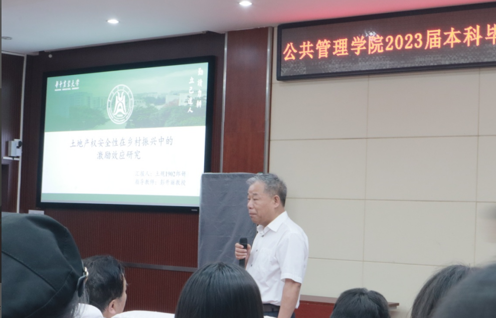 土地管理系蔡银莺教授表示,本科毕业论文注意实证研究是一个很好的传统,期望毕业论文能与大学生社会实践与社会调查相结合,更加关注新时期三农问题。工程管理系主任王歌老师认为,同学们在完成毕业论文的过程环节中的锻炼和提升了识别问题、分析问题和解决问题的能力,在答辩中体现了本专业的特色和风采。行政管理系主任姜庆志老师在答辩总结时勉励同学们说:“毕业论文不仅是阶段性学习的成果,也是大家人生道路上的一个小结,希望各位同学以高度的历史责任感,进一步地提升毕业论文质量,为自己四年的本科学习画上圆满的句号。”