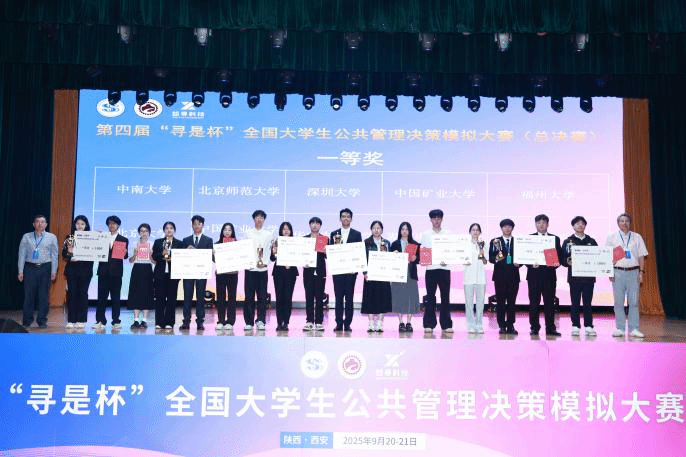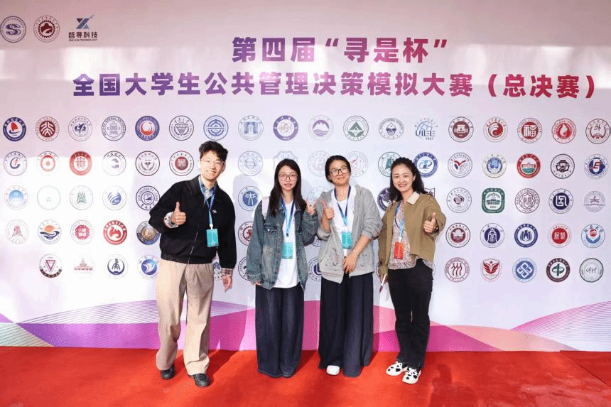 全国总决赛设置公共管理方案设计、公共管理决策演练沙盘对抗以及现场团队答辩三个环节。备赛期间,团队基于“利城市”案例资料,紧扣城市治理热点议题,聚焦民生需求与政策落地难点,在导师指导下构建了兼具逻辑性与创新性的公共管理方案。9月20日沙盘对抗环节,三位学生默契配合、精准计算,动态调整决策策略,高效应对模拟场景中的复杂挑战,以方案设计+沙盘模拟小组第二的优异成绩挺进答辩环节。次日答辩环节,团队与北京大学等20支高校队伍同台竞技,立足国家高质量发展战略,从多重制度逻辑视角系统阐释方案设计思路与沙盘对抗策略,结合现实案例深度剖析公共物品供给的治理逻辑,为城市高质量发展提出可行对策。面对评委专业提问,同学们沉着应答,对城市高质量转型发展中国家逻辑、科层逻辑、市场逻辑之间的互动与张力进行了科学合理解释,充分展现华中农大公管学子的学术素养与综合能力。
