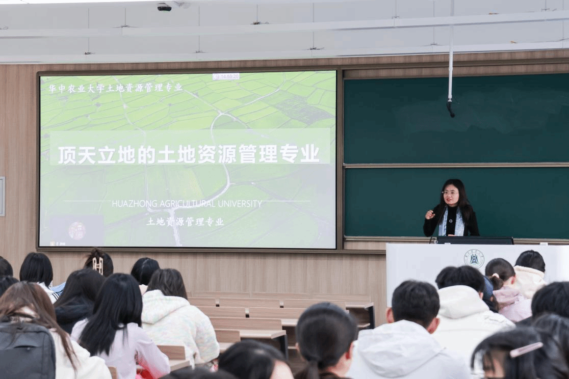 土地管理系主任曾晨教授以“顶天立地的土地资源管理专业”为题,从学科积淀、专业特色、育人模式三大维度展开介绍。她强调,土管专业不仅底蕴深厚,更是一个多学科交叉融合的领域。随着数字化浪潮的推进,科技为土地管理注入新动能,有力提升了土地利用效能,助力资源环境的可持续建设。曾老师勉励同学们在热爱的专业中积极探索、施展才华,牢记爱农兴农的使命,努力成长为兼具社会责任感与乡土情怀的拔尖创新人才。
