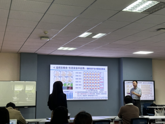 分享结束后,参会师生均对该交叉研究领域表现出极大的兴趣,并展开了热烈讨论。主持人何利杰老师表示徐老师对农业卫星遥相关知识进行的梳理,对于开展相关学科交叉研究极为重要,就作物收入方式改变收益的角度展开深度探讨。左成超老师就稻虾田碳排放问题进行了提问,就气象遥感对于农业风险的减量过程展开深度讨论。