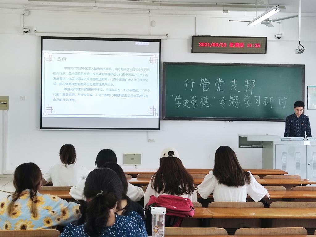 2021年9月23日,为加强学生党员的党性修养,推进党史学习,我院行管本科生党支部开展“学史崇德”专题学习研讨会。