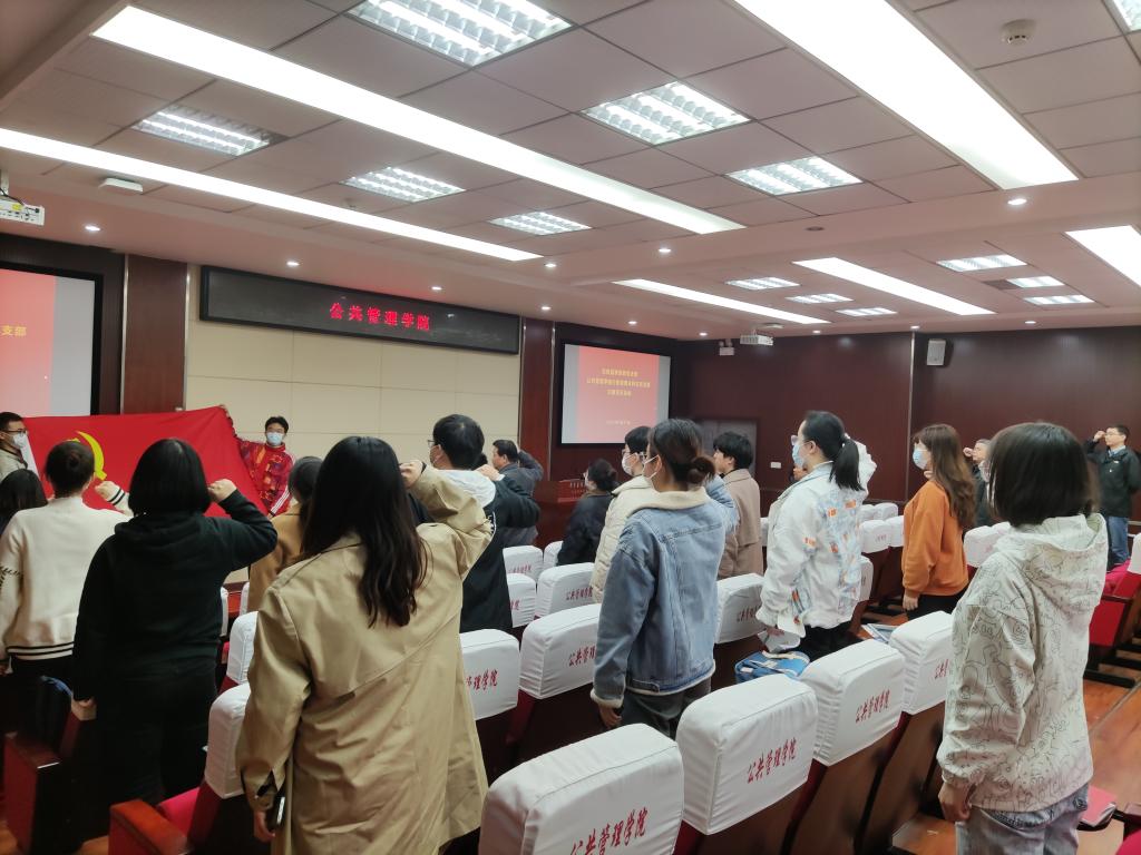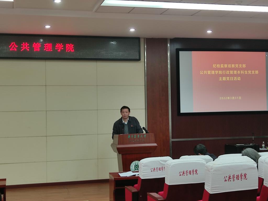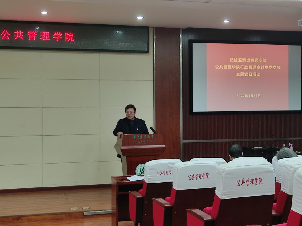 行政管理本科生党支部联合开展主题党日活动,活动由纪检监察党支部书记余斌主持。