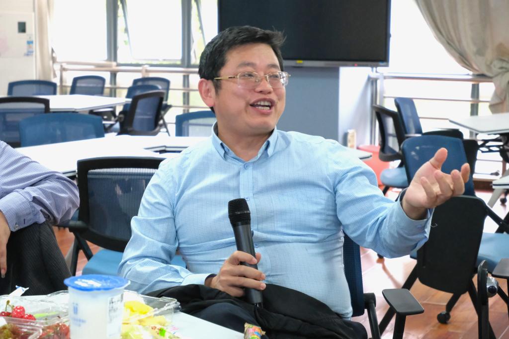 梅昀以个人自身丰富的经历为例,他谈到:“幸福感的获得是心灵拂尘的吸尘器,幸福感的获得主要取决于实际所获与内心预期的对比。”他鼓励各位老师做一位笃定的奋斗者,立足专业不断发挥自身优势,全方位实现自身价值,同时他也建议H动漫