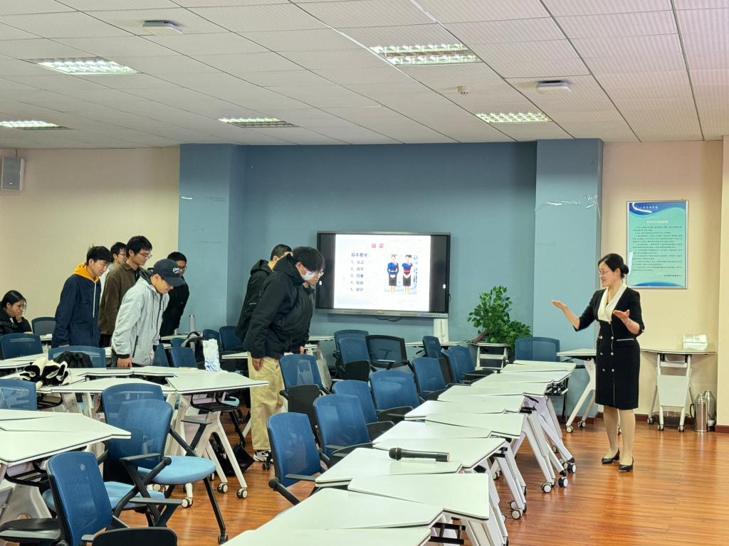 学生骨干开展公务礼仪专题培训,由国际注册礼仪培训师、国家人力资源和社会保障部高级礼仪培训师田惠做客“公行训练营”担任主讲。