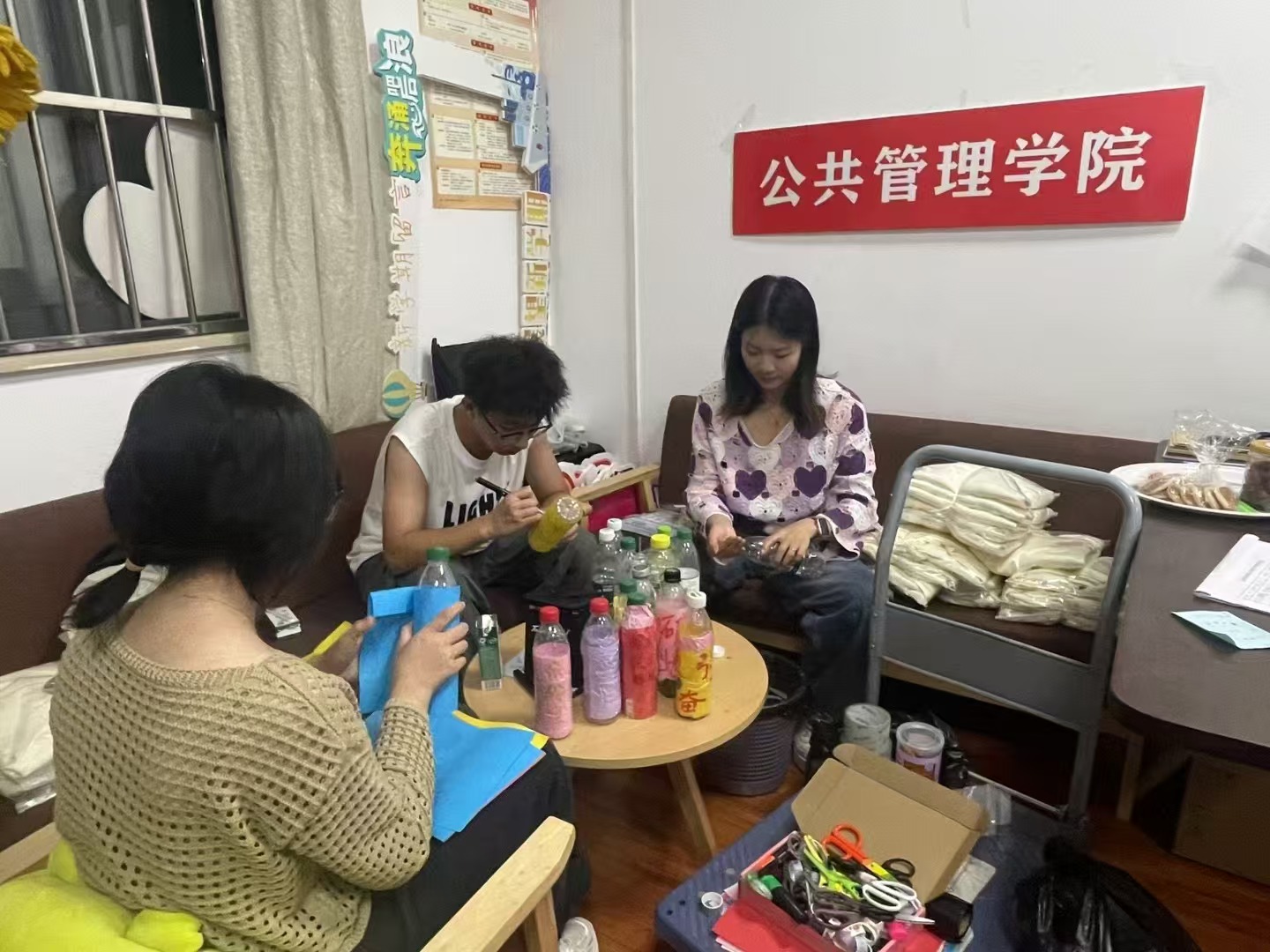 学生会学服部主办的“加油瓶”制作活动于人文楼M101教室热烈展开。
