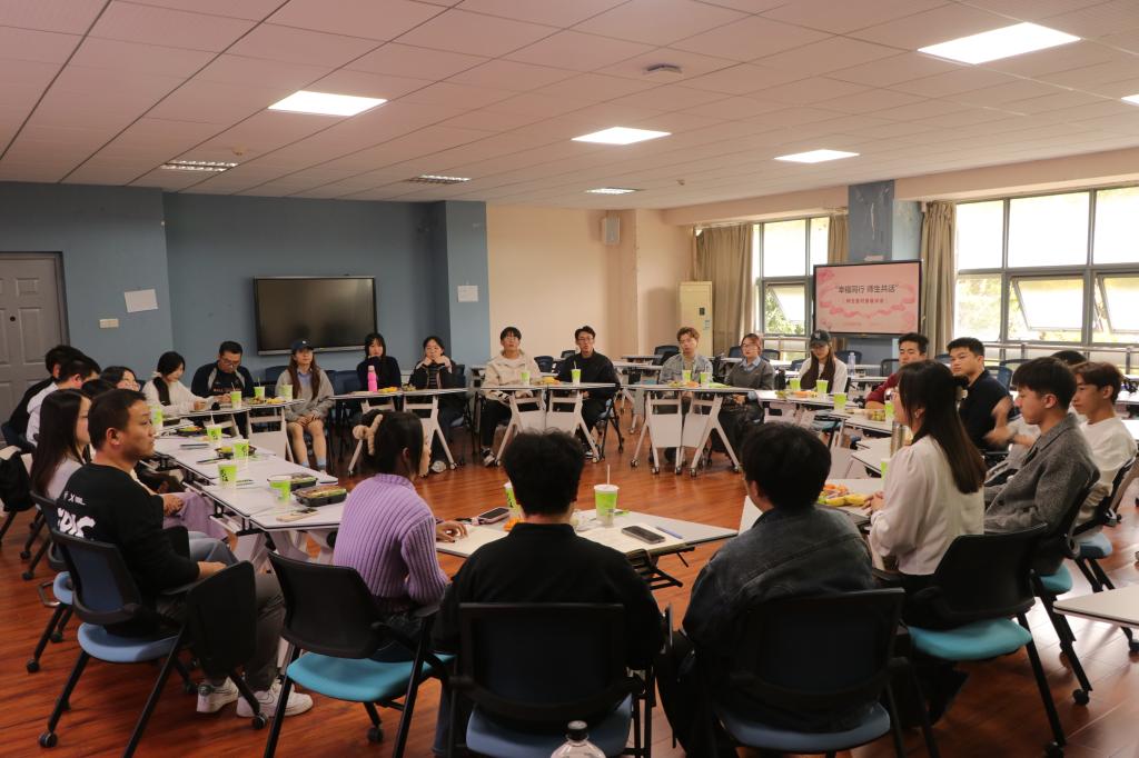 在分享幸福的同时,同学们也坦诚地吐露了生活中的困扰与挑战,如科研的压力、宿舍条件的不足以及网络信息喧嚣带来的困扰等。对此,樊林玉老师与吴小龙老师耐心倾听,逐一给予中肯的建议与解答。老师们鼓励同学们勇敢面对困难,积极寻求解决之道,加强与导师的沟通,共同营造一个更加温馨、和谐的学习生活环境。同时,老师们还勉励大家珍惜时光,培养批判性思维,通过阅读经典著作来丰富精神世界,抵御外界的干扰。