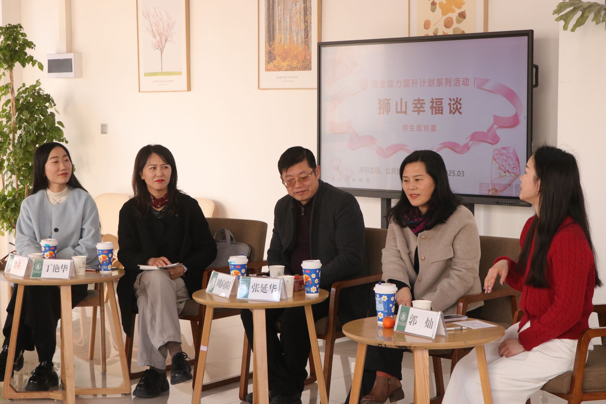 党委书记周向阳、副院长丁艳华、辅导员樊林玉和吴小龙,与近20名本研学子围坐成“幸福圆桌会”,以国际幸福日为契机,解码幸福的N种打开方式。