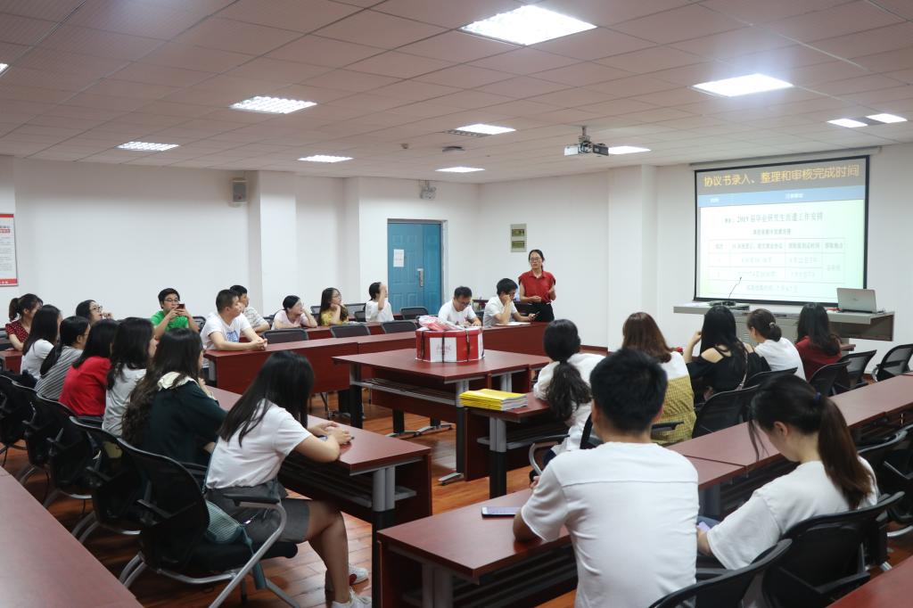 会上,向克蜜老师就毕业生档案派遣、党团组织关系转接、户口迁移等重要事项进行说明,并重点强调离校安全问题,确保每一位毕业生要安全、文明、有序离校。随后,尹晓飞、吴亲亲、马艳春、刘世超、刘浩文等19届毕业生就自己的论文撰写与发表、职业规划、求职面试等过程中的注意事项与心得与在座低年级同学进行了交流与分享。尹晓飞讲述了考取选调生的心路历程,“到基层施展才干,为祖国建设添砖加瓦”。吴亲亲分享了自己在求职过程中收获8个offer的经历,她表示机会永远是留给有准备的人的。马艳春、刘世超及刘浩文提到在研究生阶段一定要提前做好职业规划,尽早完成小论文的撰写以达到毕业要求,给自己的求职留下充裕的时间,高质量的实习经历将会使自己在求职过程中大放异彩。