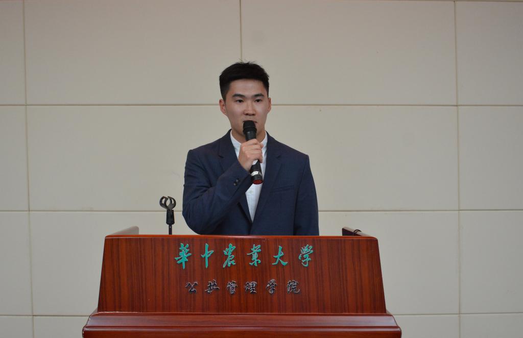 对所有在学生工作岗位上辛勤工作的同学们表示感谢,他希望新一届的团成员能学习借鉴好的方法和经验,践行“为学生服务”的宗旨,助力全院学生工作蓬勃发展,在更多的领域发出公管声音。